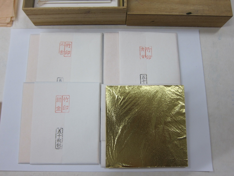 ⑴「箔押し体験―金のミニ屏風をつくる」